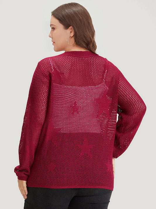 Star Pattern Lantern Sleeve Hollow Out Pullover
