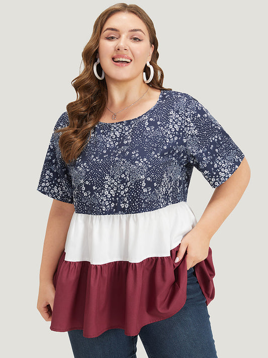 Supersoft Essentials Geometric Curved Hem Patchwork Very Stretchy Pullover