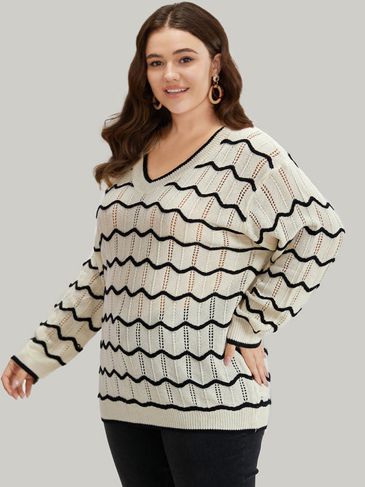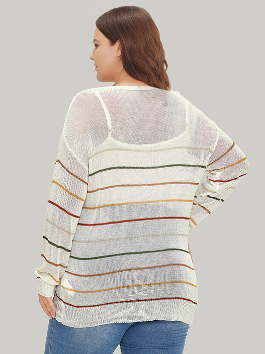 Striped Drop Shoulder Cut Out Bodycon Pullover