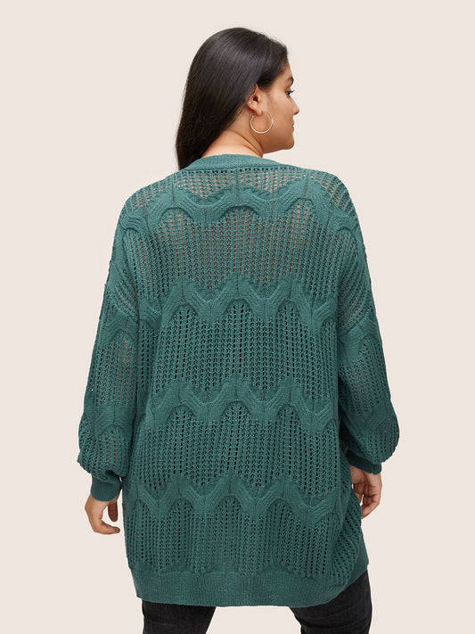 Texture Cable Knit Open Front Pocket Cardigan