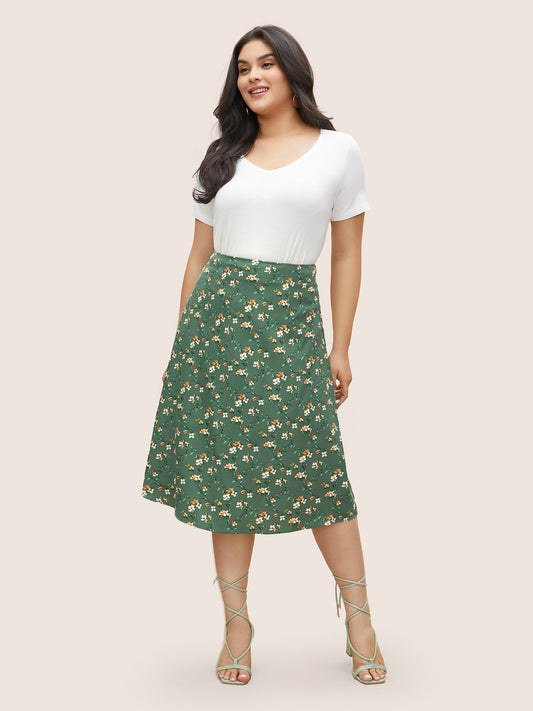 Ditsy Floral Print Zipper Fly Cropped Skirt