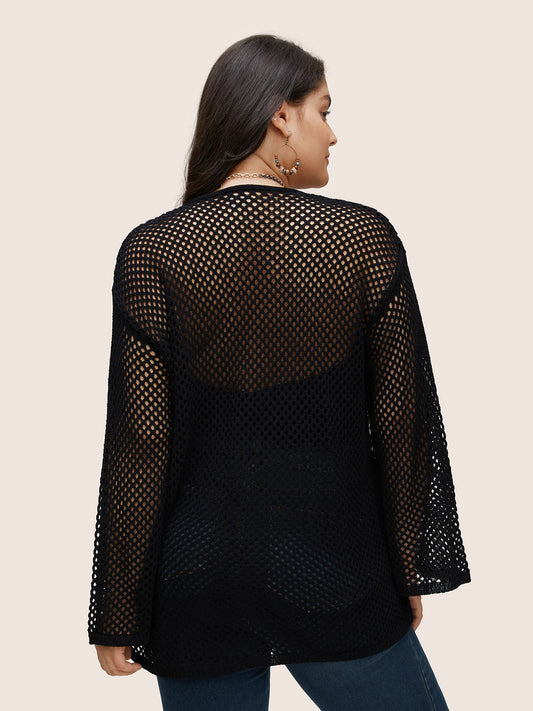 Plain Cable Knit Scoop Neck Bell Sleeve Pullover