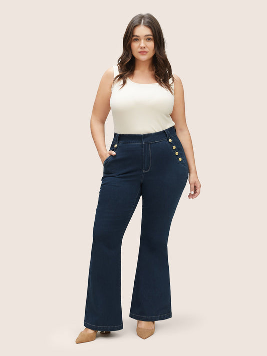Dark Wash Zipper Button Detail Flare Leg Jeans