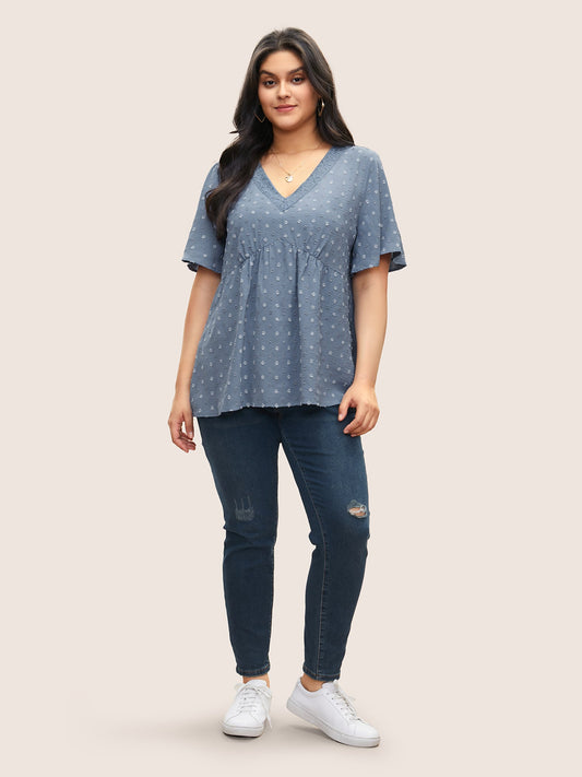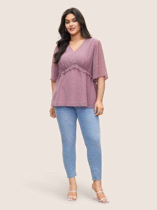 Chiffon Mesh Texture Polka Dot Frill Trim Blouse