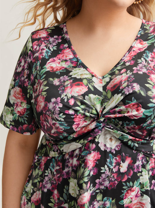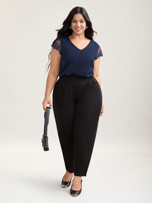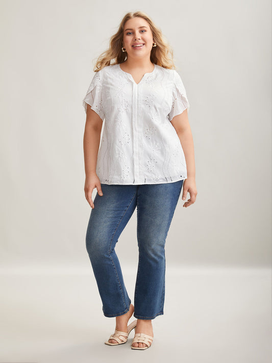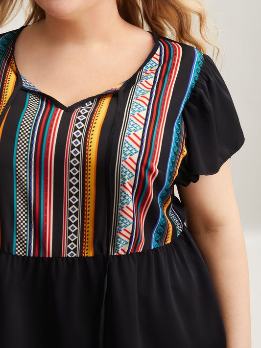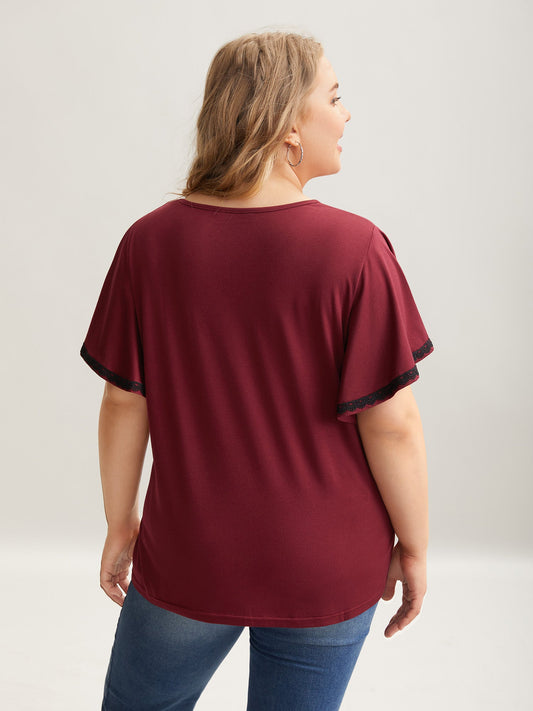 Stretchy Color Contrast Flutter Sleeve T-Shirt