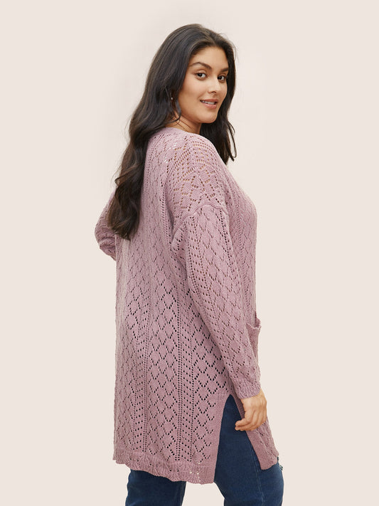 Pointelle Knit Pocket Split Hem Cardigan