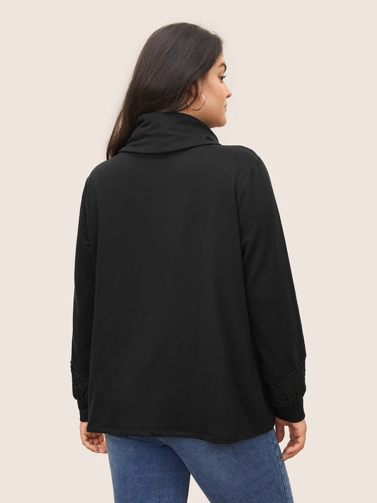 Plain Turtle Neck Crochet Lace Sweatshirt