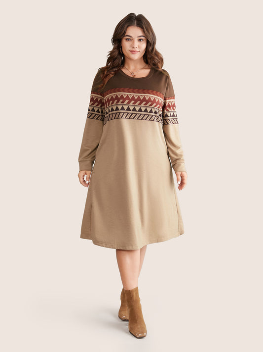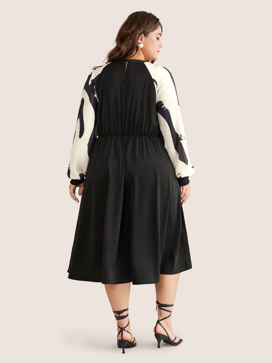 Colorblock Keyhole Pleated Detail Shirred Dress
