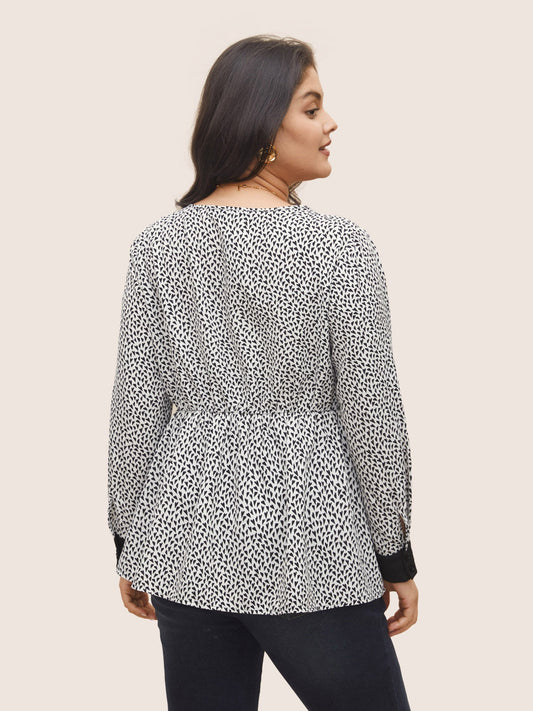 Ditsy Floral Ties Elastic Cuffs Blouse