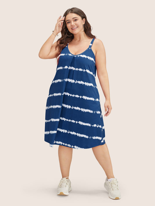 Tie Dye Plicated Detail Pocket Striped Cami Dress