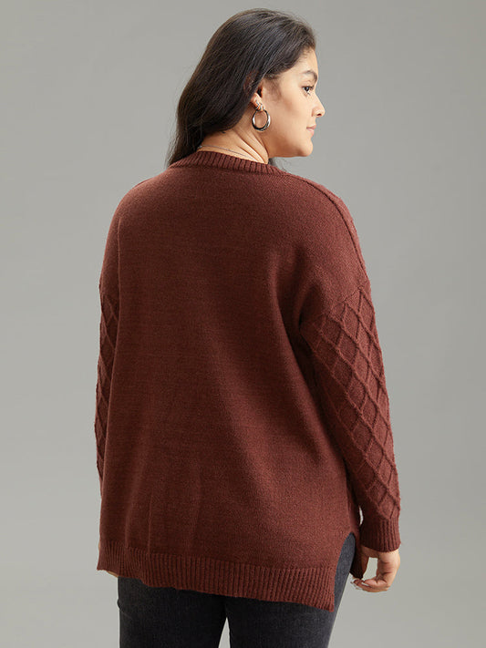 Supersoft Essentials V Neck Solid Split Side Cable Knit Pullover