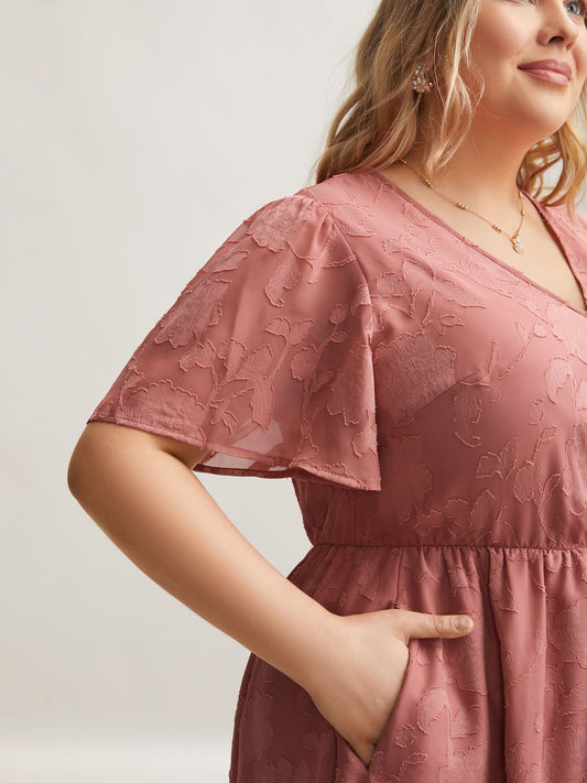 Textured Surplice Neck Flared Sleeve Midi Dress