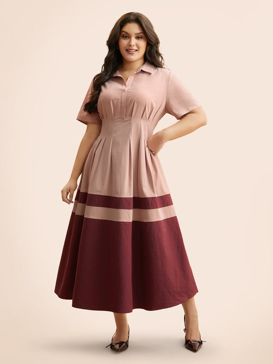 Contrast Shirred Pleated Maxi Dress