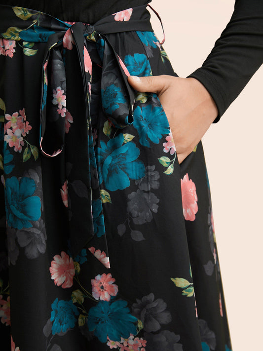 V Neck Floral Patchwork Belted Dress