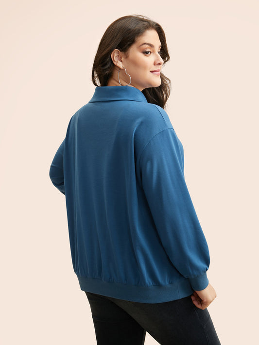 Lapel Collar O Ring Zipper Sweatshirt
