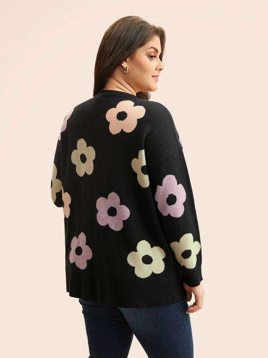 Contrast Floral Drop Shoulder Cardigan