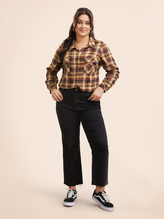 Plaid Shirt Collar Patched Pocket Blouse