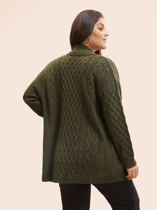 Solid Texture Cable Knit Patch Pocket Cardigan