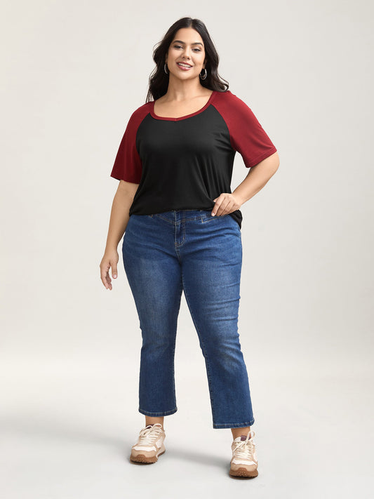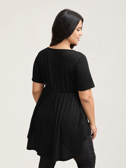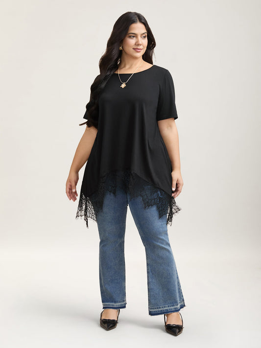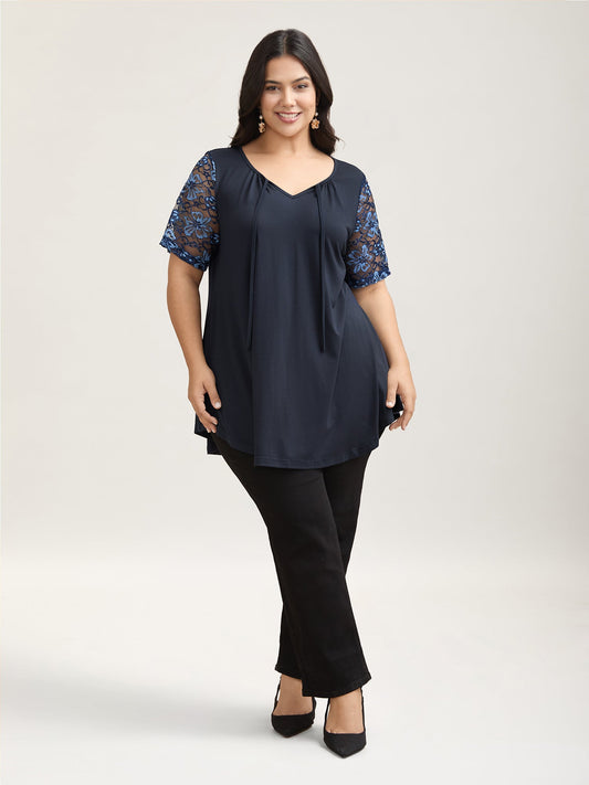 Dual-Tone Lace Neck Tie Relaxed T-Shirt