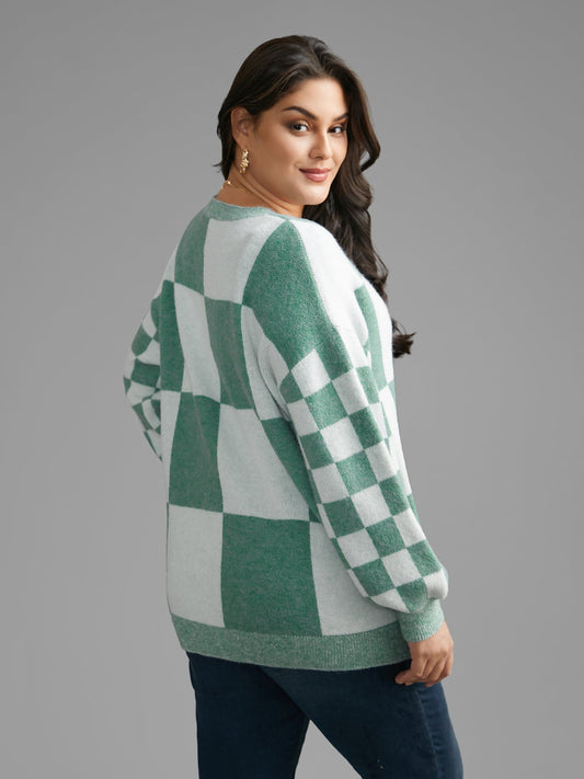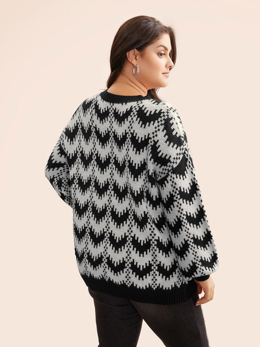 Geometric Jacquard Drop Shoulder Sleeve Pullover