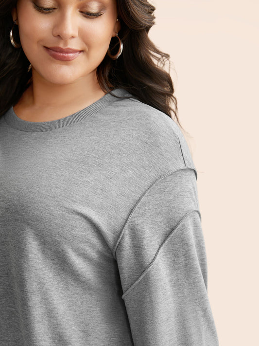 Round Neck Tucked Seam Slit Hem Sweatshirt