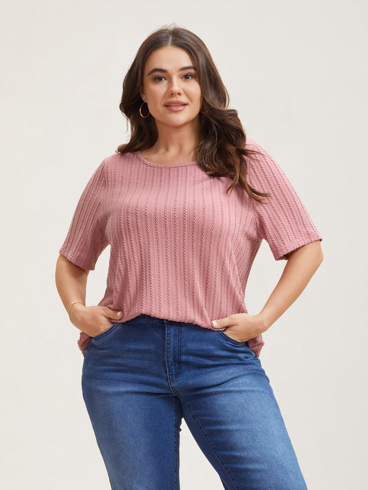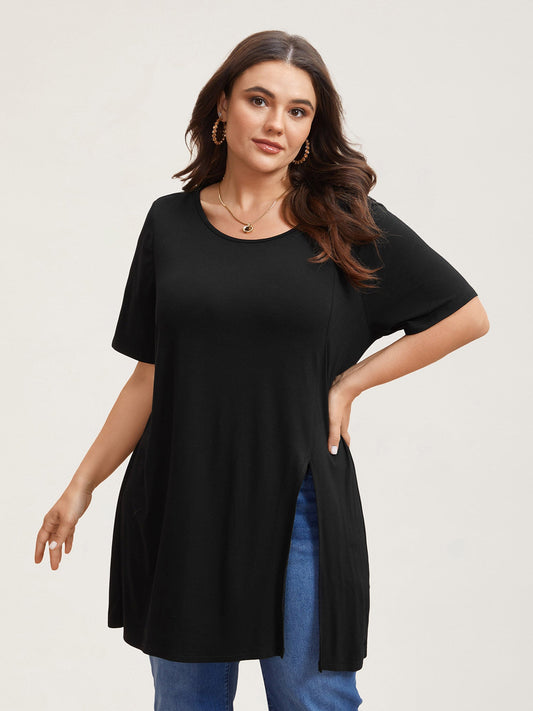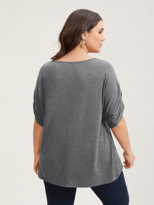 Stretchy Solid Color Gathered Sleeve T-Shirt