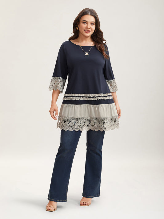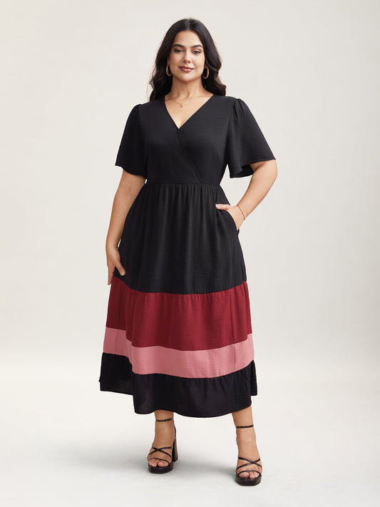 Color Contrast Flutter Sleeve Tiered Midi Dress