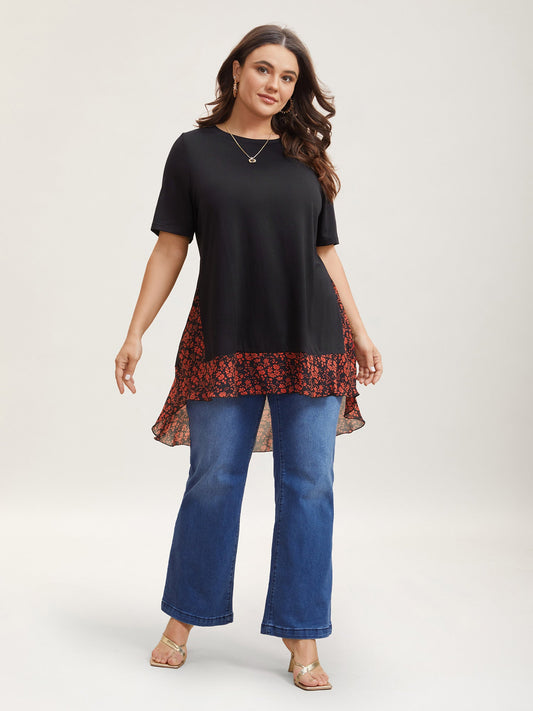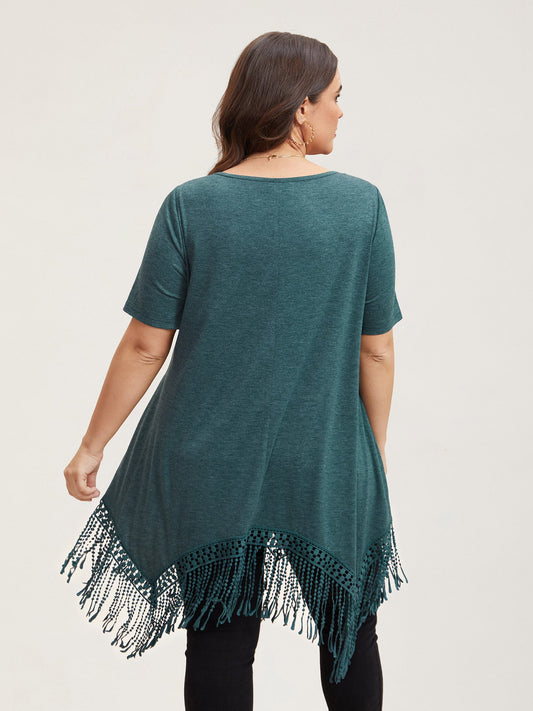 Hi-Low Tassel Hem Stretchy Plain T-Shirt