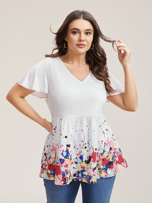 Color Splash Stretchy Flutter Sleeve Plain Top