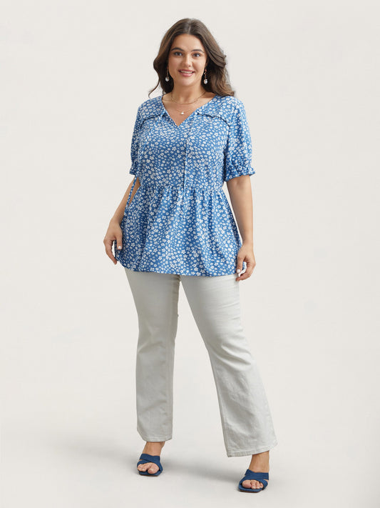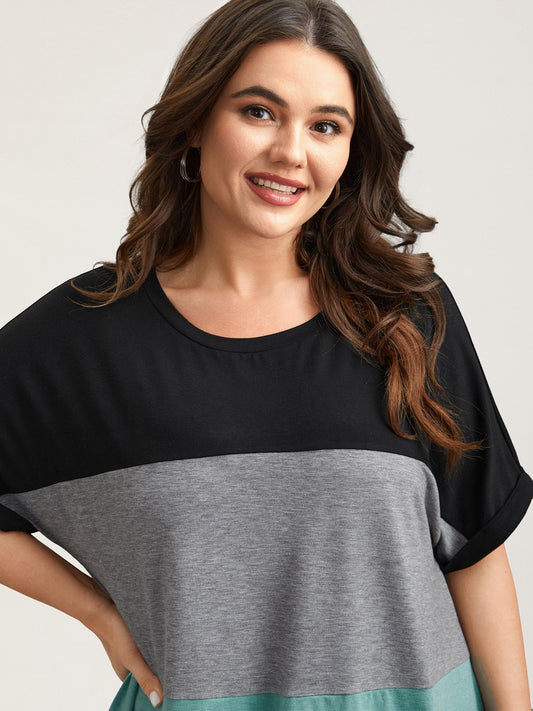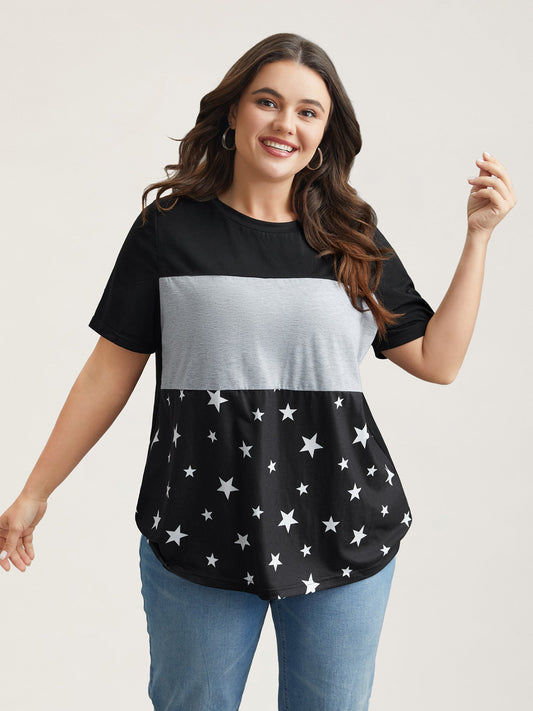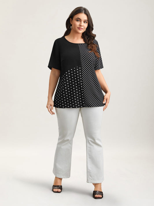 Mixed Fabric Polka Dots Patchwork T-Shirt