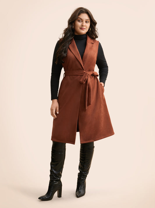 Suit Collar Faux Suede Belted Jacket