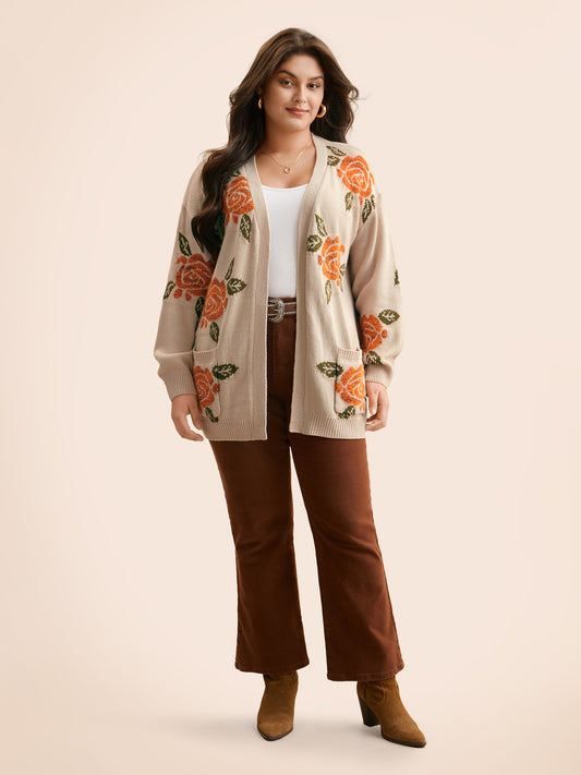 Floral Texture Patch Pocket Cardigan