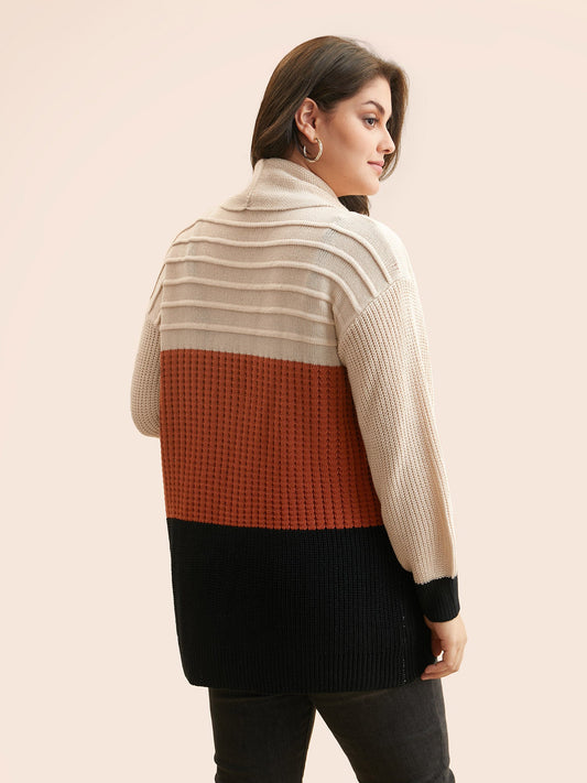 Colorblock Contrast Lapel Collar Texture Cardigan