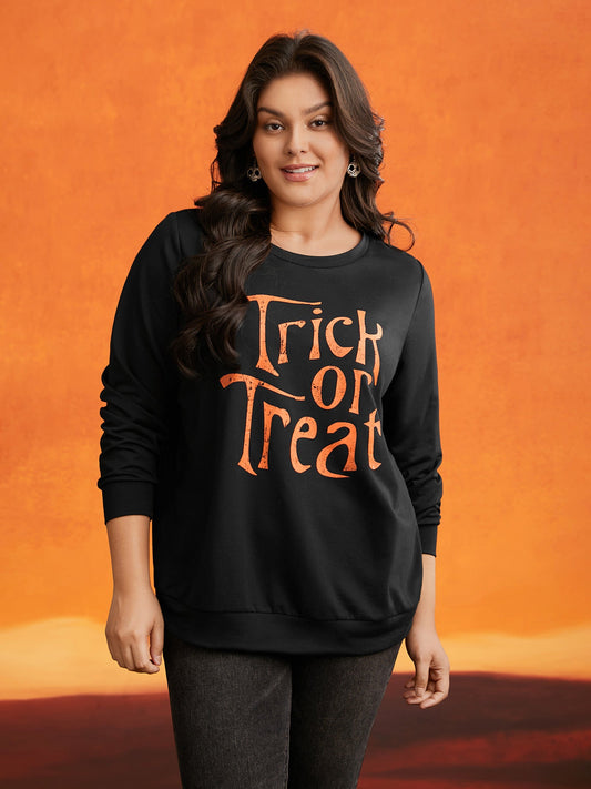 Trick Or Treat Slogan Printed Sweatshirt