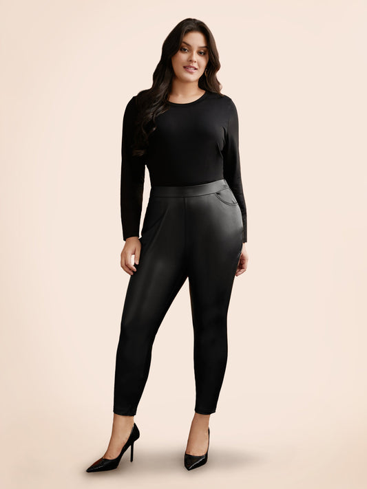 Leather Pockets Mid Rise Leggings