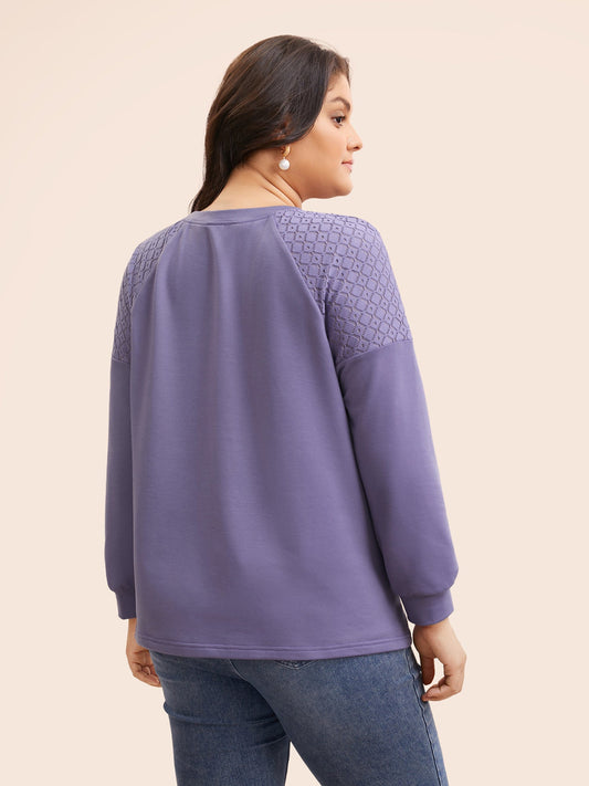 Round Neck Lace Patchwork Lantern Sleeve Sweatshirt