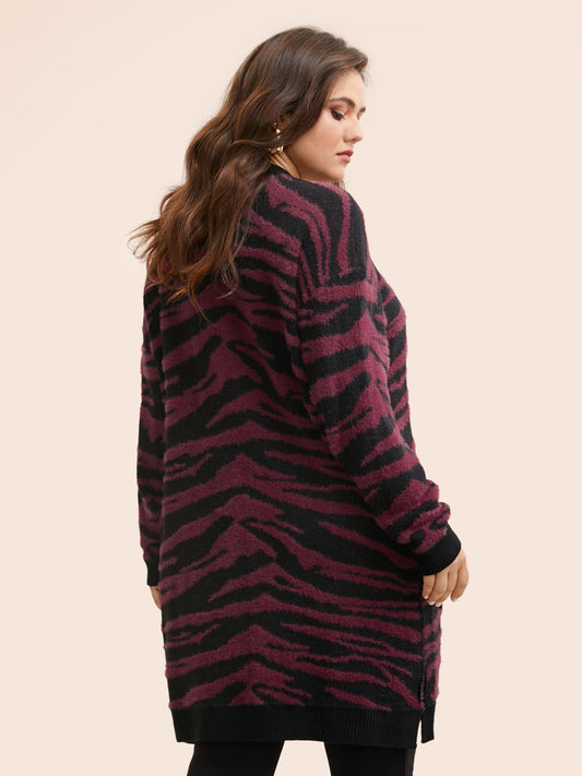 Zebra Print Fluffy Patch Pocket Cardigan