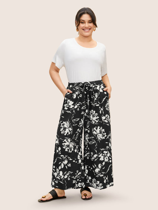 Silhouette Floral Print Tie Knot Wide Leg Pants