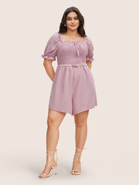 Heart Neckline Mesh Cap Sleeve Gathered Dress