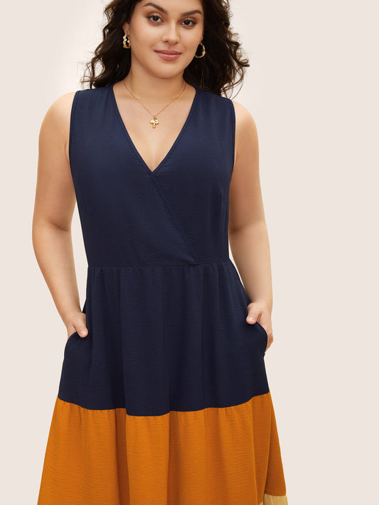 Patchwork Contrast Overlap Collar Sleeveless Dress