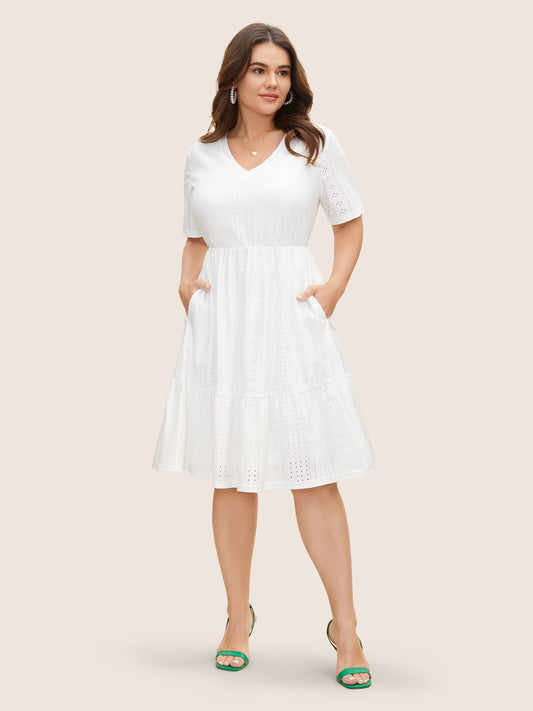 Plain Broderie Anglaise Elastic Waist Dress