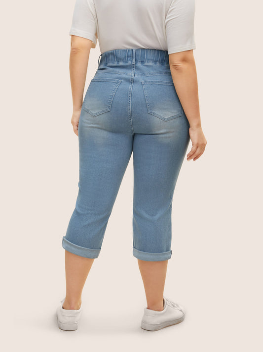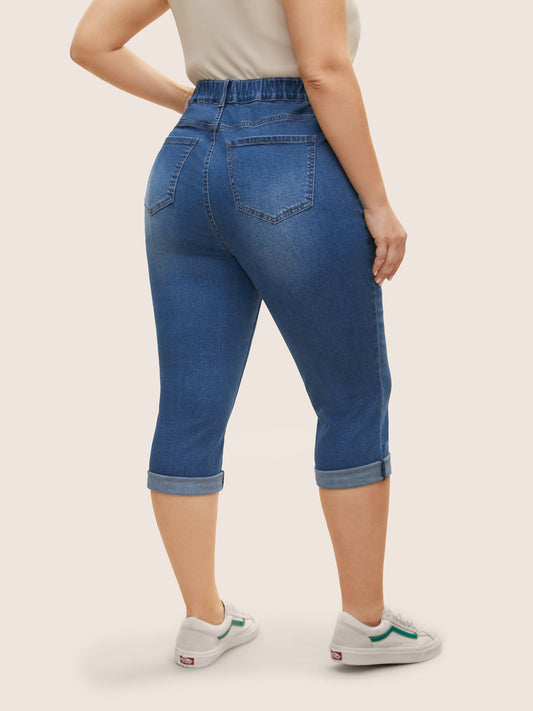 Medium Wash Roll Hem Pull On Jegging Jeans