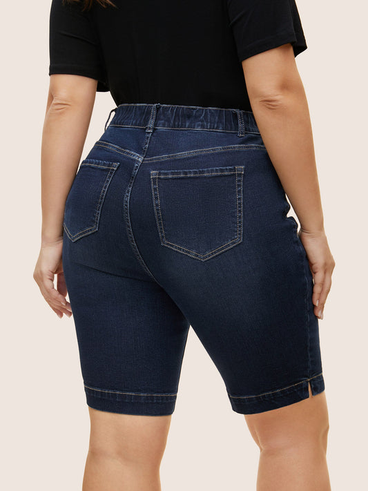 Dark Wash Split Hem Quilted Denim Shorts
