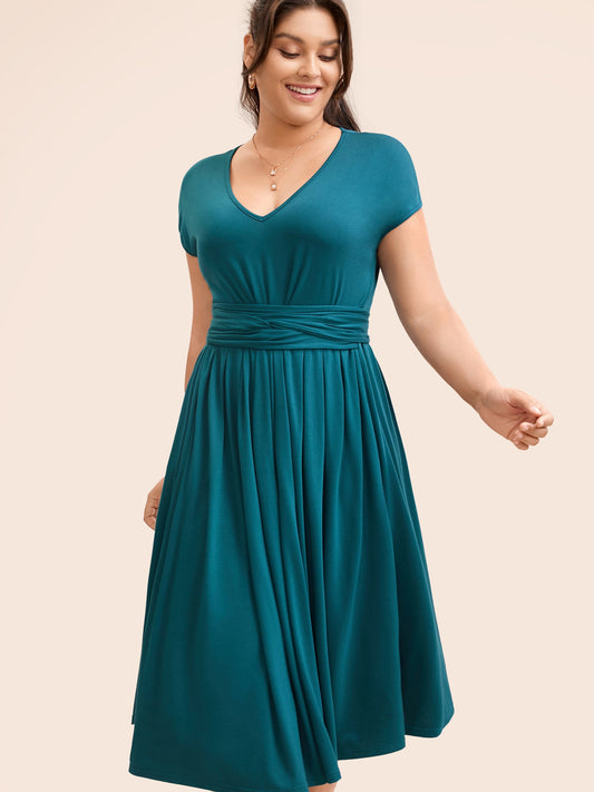 Solid Tie Knot Pleated Cap Sleeve Dress