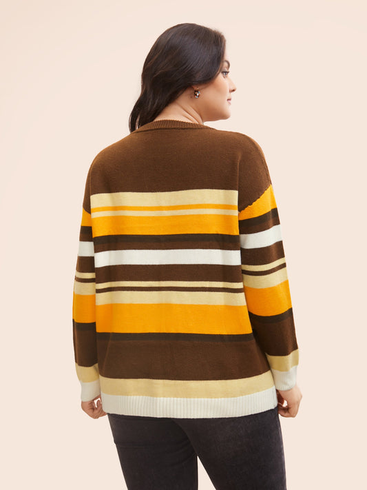 Contrast Striped Drop Shoulder Sleeve Pullover