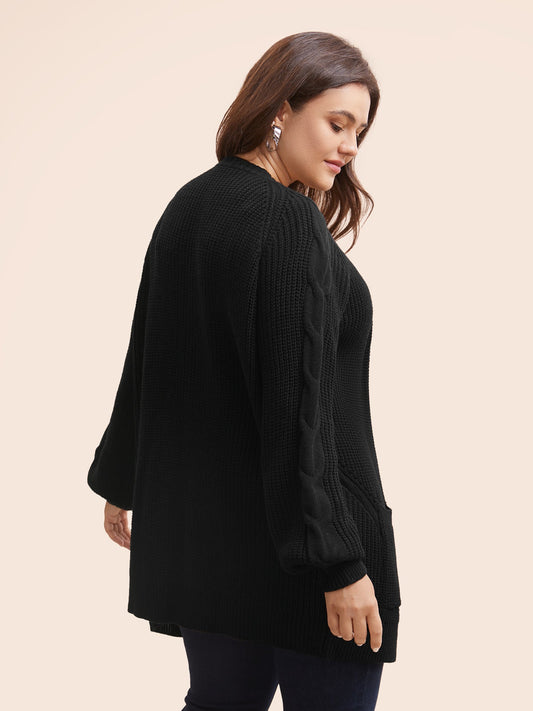 Plain Hooded Drawstring Drop Shoulder Cardigan
