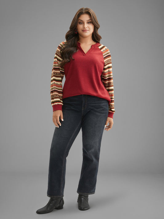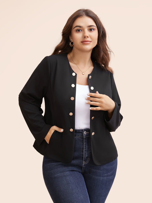 Suit Collar Striped Patchwork Tab Sleeve Blazer