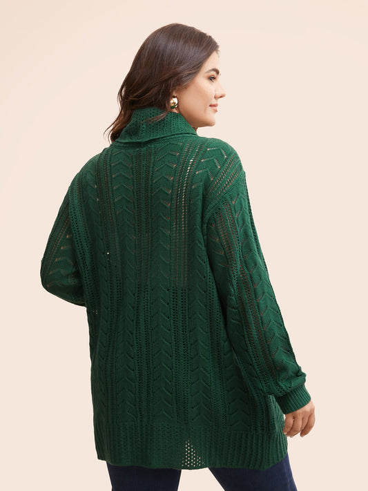 Kimono Collar Cable Knit Arc Hem Cardigan