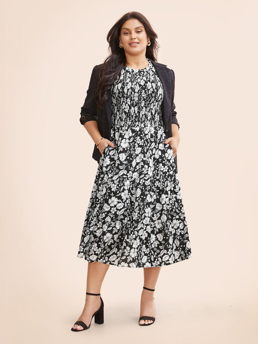 Silhouette Floral Print V Neck Patchwork T-shirt