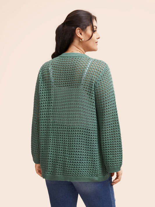 Cotton Texture Cut Out Bell Sleeve Cardigan